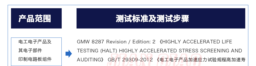 用途:HALT(Highly?Accelerated?Life?Test,高加速壽命試驗)-HASS(Highly?Accelerated?Stress?Screening,高加速應力篩選)、這是一種能夠提高產品可靠性的測試手段,能在短時間內激發(fā)出產品的缺陷及時改進