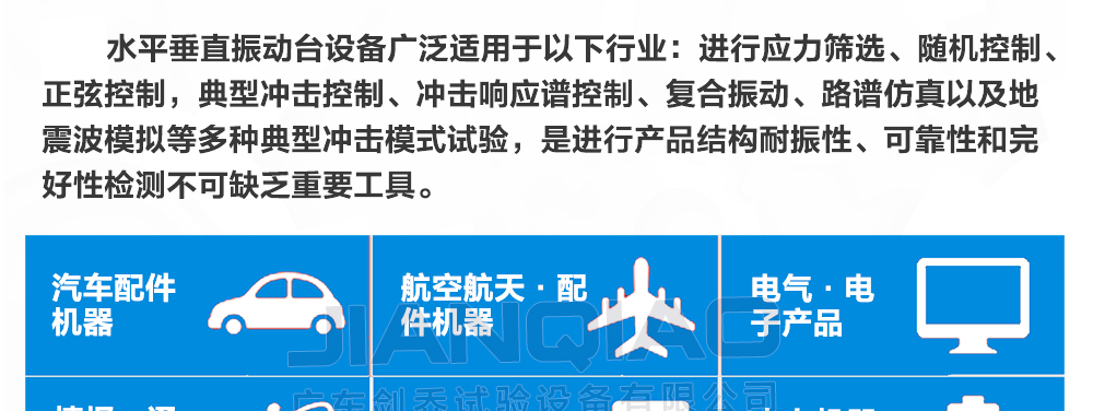 產(chǎn)品型號:JQA-102-240 品牌:劍 喬 用途:該水平垂直振動臺可模擬再現(xiàn)正弦、隨機、諧振搜尋與駐留、典型沖擊和道路仿真等模式,符合:(MIL-STD,DIN,ISO,ASTM,IEC,ISTA,GB,GJB,JIS,BS等國家及國際測試標(biāo)準(zhǔn))咨詢熱線:13829135130