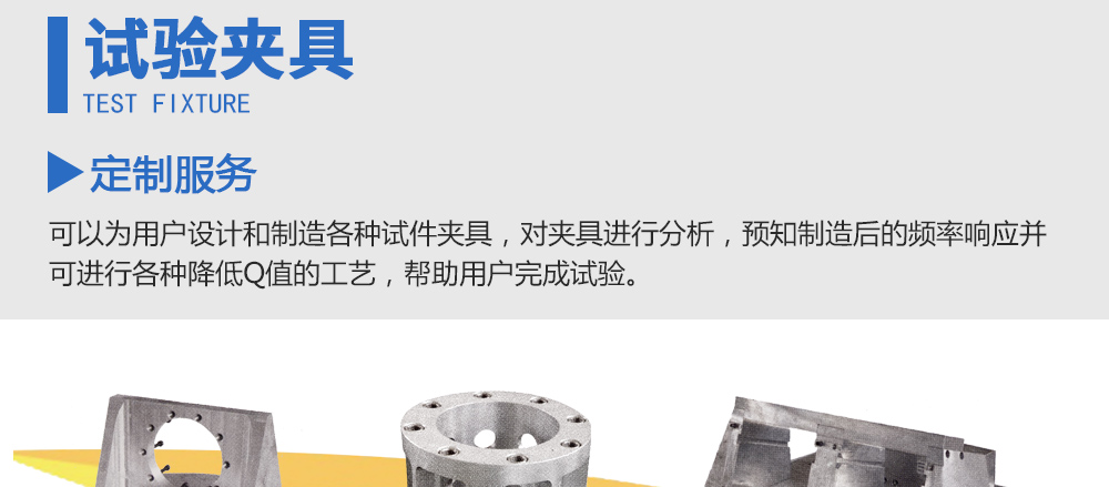 用途:可以為用戶設(shè)計(jì)和制造各種試件夾具,對(duì)夾具進(jìn)行分析,預(yù)知制造后的頻率響應(yīng)并可進(jìn)行各種降低Q值的工藝,幫助用戶完成試驗(yàn)。